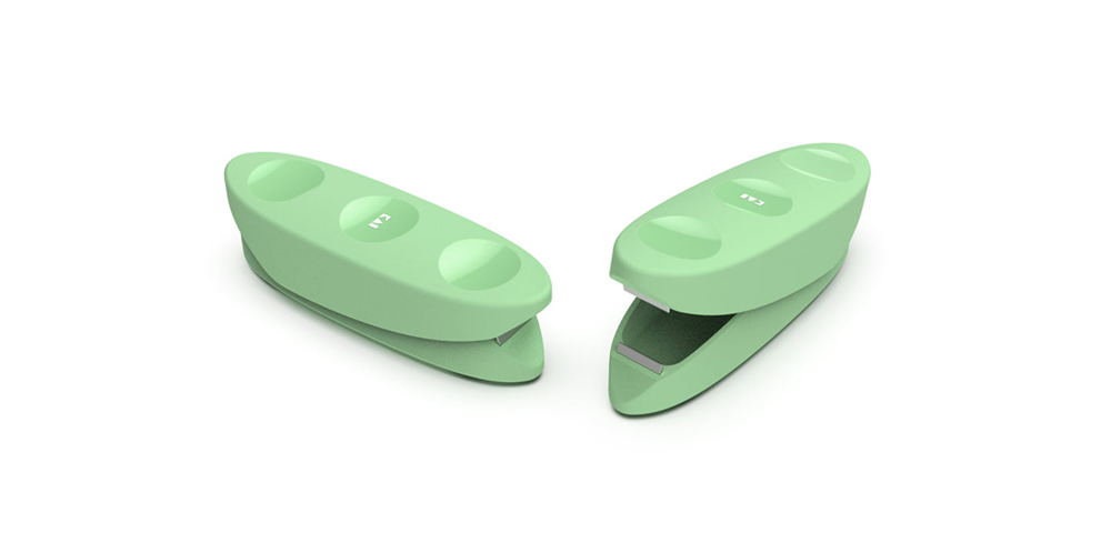 - 先端部の刃体によってホチキスのような使い心地でカットできる形状。キッチンバサミよりもコンパクトで小回りが利く、枝豆の下ごしらえに特化したデザインです。切断された先端部はそのまま本体に収まるので、散らばった切れ端を集めるような面倒な後片付けもありません。ヒンジから分解できる本体は、磁石の反発を活かしたバネのシンプルな仕組みでお手入れがしやすい構造。美味しさのためには欠かせない、でもちょっと面倒な下ごしらえの負担を軽減する提案です。