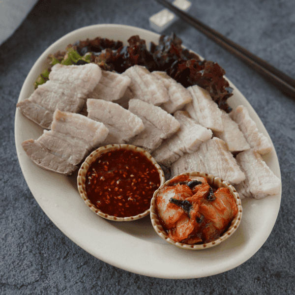 2を食べやすい大きさに切り、お皿に盛りつける。 お好みでサニーレタスやキムチと一緒に召し上がる。 |
