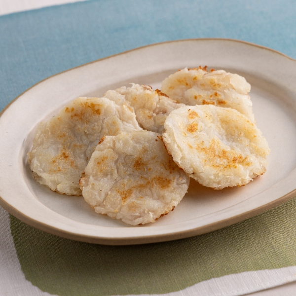 ジャガイモが入っていてほろっとした食感のお焼きです。大きいサイズで焼いて食べやすい形に切っても。
