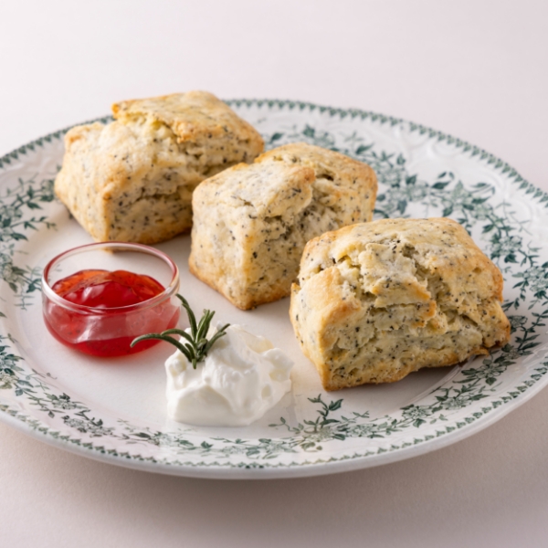 | 5. | クロテッドクリームやジャム、メープルシロップなどを添えていただく。 |