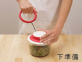 洗ったロメインレタスをchef'n サラダスピナーに入れて水を切る。 | ![]() |