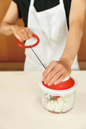 にんにく、玉ねぎはそれぞれスピードみじん切り器でみじん切りにする。トマトは1cm角に切る。 | ![]() |