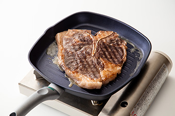 | 1. | ティーボーンステーキ肉は15分程室温にもどす。 | ||