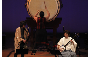 文化事業コンサートは、世界各国で活躍するアーティストを迎え、一夜限りのコラボレーションを楽しんでもらおうと、1996年12月に世界的ヴァイオリニストである古澤巌さん率いる弦楽アンサンブル「タイフーン」をお招きして以来続いているものです。11回目を迎えた今回のコンサートは、「新しさの中にある懐しい響き」をコンセプトに、現代の太鼓史に残る偉業を数多く成し遂げたパイオニア、太鼓ドラマーのヒダノ修一さんと、数々の津軽三味線大会で優勝を重ね、純邦楽界で高い評価を受ける三味線プレイヤーの上妻宏光さん、全米スムースジャズ賞 最優秀女性アーティスト賞を2年連続受賞した世界的ピアニストでもある作曲家の松居慶子さん、さらにスペシャルゲストとして、今年グラミー賞を受賞したサックス奏者のオラーン・エトキンさんのコラボレーションが実現しました。
