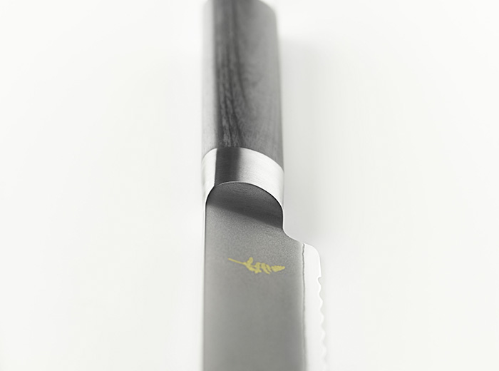独特な波刃の形状で、鋭角で切りはじめた食材をなだらかな波線でスムーズに切り進めます。食材にかかる力の加減がコントロールしやすく、パン・ド・カンパーニュやトマトなどの、外側が硬く、中が柔らかい食材も形を崩さず、思い通りに切ることができます。パン屑の飛び散りが少ないのも特徴です。