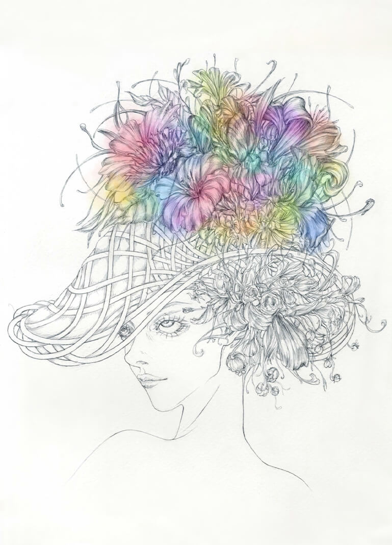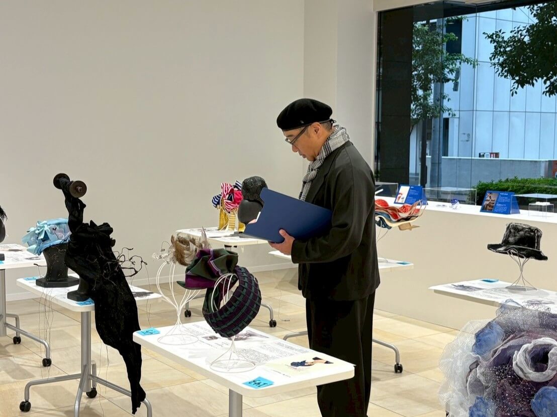 4年目を迎える2025年は「越境」をテーマに作品を募集し、多数の応募デザインの中から30作品を選定し、8月に一次審査通過者を発表いたしました。通過者にはデザイン画から帽子を実制作いただき、その中から本イベントでは、入選、優秀賞、審査員特別賞、最優秀賞を発表いたしました。最優秀賞には大倉小枝さんの『流動』、審査員特別賞にはチェンシィー恵蒔ルイースさんの『開花』が選ばれました。