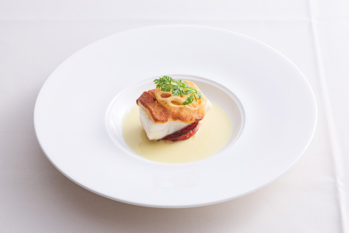 真鯛のヴィエノワーズ 生姜と味噌香るヴールブランソース