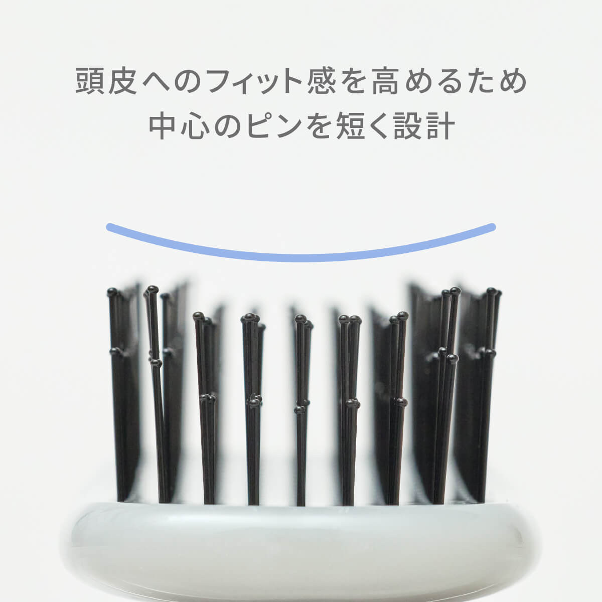 従来のブラシよりも長く、硬いピンを採用することで頭皮へしっかりアプローチ。