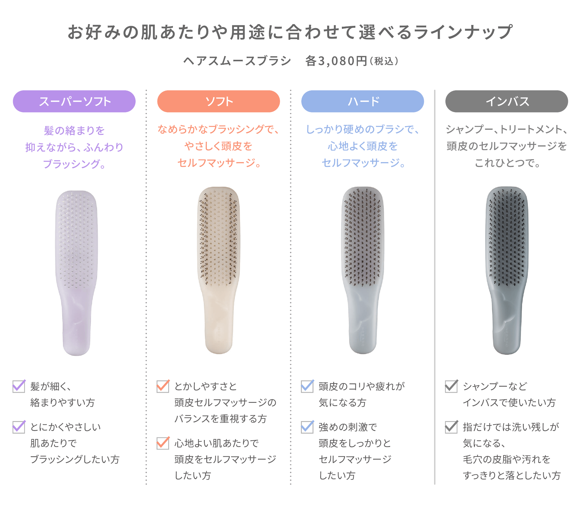 「ヘアスムースブラシ(スーパーソフト/ソフト/ハード)」に加えて