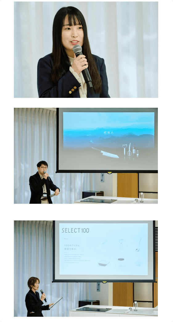 まずはじめに、マーケティング本部 広報宣伝部の林より、KAIグループの紹介および貝印が展開するキッチンツールブランドの全体像についてご説明しました。