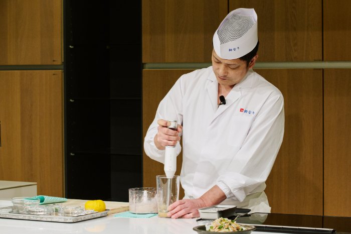 また、「SELECT100 コードレスブレンダー」については「軟骨も砕けるほどのパワフルさと滑らかさで裏ごしの手間を解放してくれるため、自宅でも簡単に料亭の味を再現できるので是非使ってみて体感してほしい。」と、プロの厨房でも通用する性能と自宅でも簡単に使える使いやすさを強調しました。