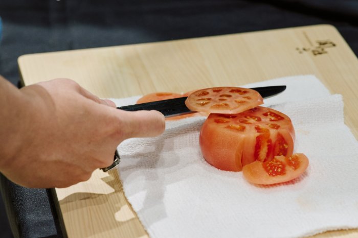 貝印No.1の切れ味で、驚くほどスムーズな薄切りが可能。