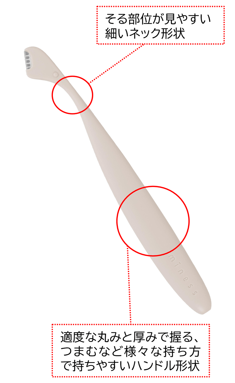 - そる部位が見やすいネック形状とカミソリを持つ手が
