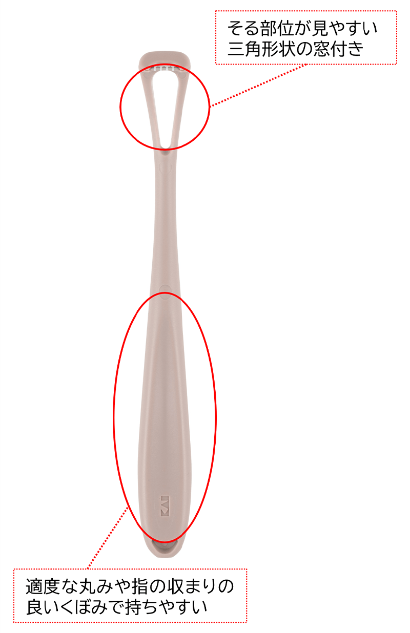 - そる部位が見やすい三角形状の窓付きハンドルで視認性が高い