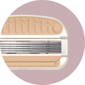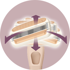 肌の凹凸に合わせてヘッドが左右前後に動く機構 (シームレスフィッティングシステム®)※と、刃1枚1枚が動く独立サスペンションの5枚刃で、肌の凹凸にフィットし、やさしくなめらかな肌あたりを実現しています。
