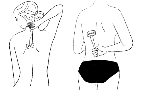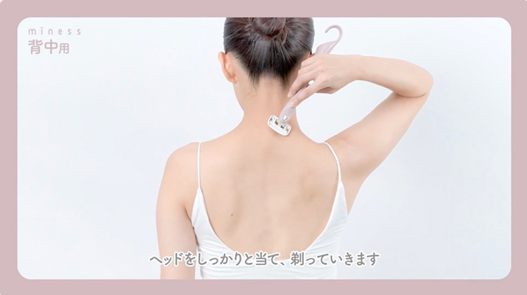 背中の上半分は下から上に、下半分は上から下にゆっくりカミソリを動かします。