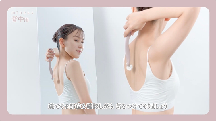背中はハンドルを長めに持って、凹凸に気をつけながらケアしましょう。