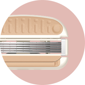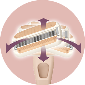 肌の凹凸に合わせてヘッドが左右前後に動く機構 (シームレスフィッティングシステム®)※と、刃1枚1枚が動く独立サスペンションの5枚刃で、肌の凹凸にフィットし、やさしくなめらかな肌あたりを実現しています。