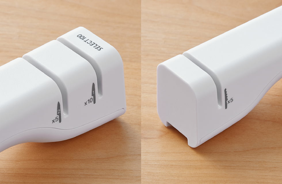 This sharpener, including the directions of the grinding wheels, is designed so that it can be used even when you turn it around, making it easy for left-handed people to use too.