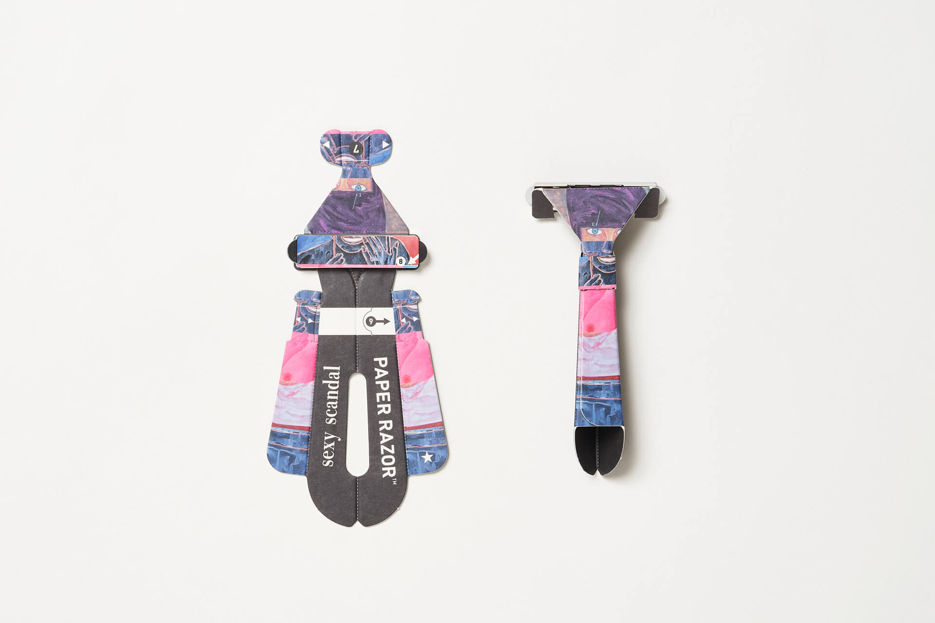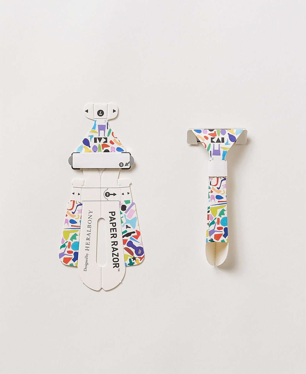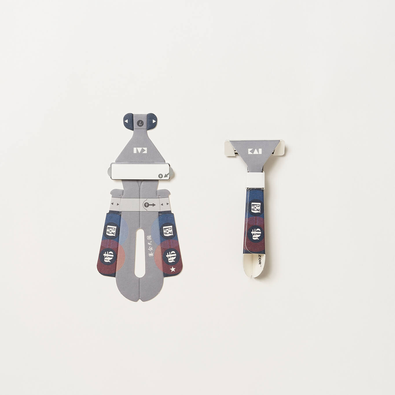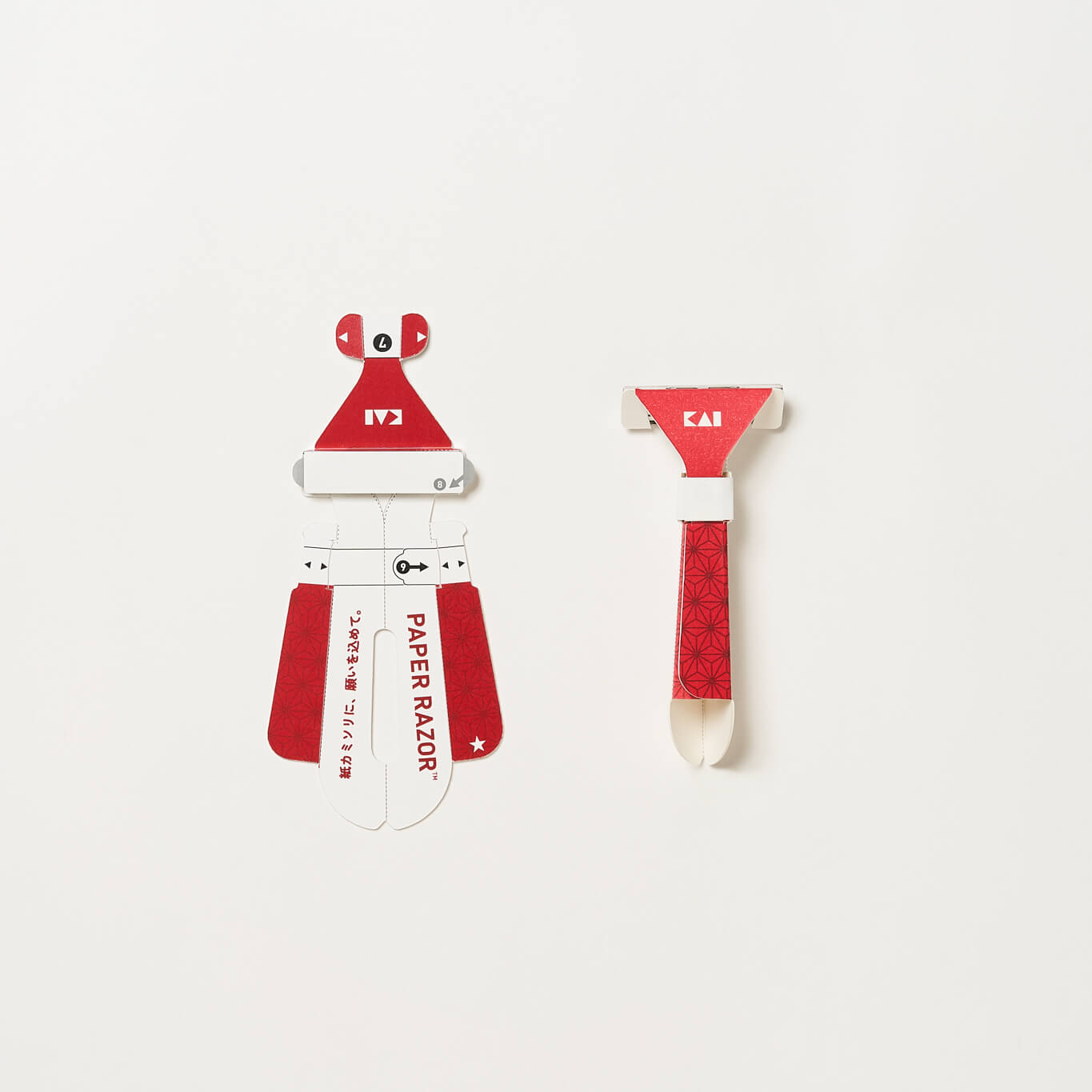 これまで主流だったプラスチック製カミソリとは一線を画す、紙と金属でできた世界初の「紙カミソリ®」。