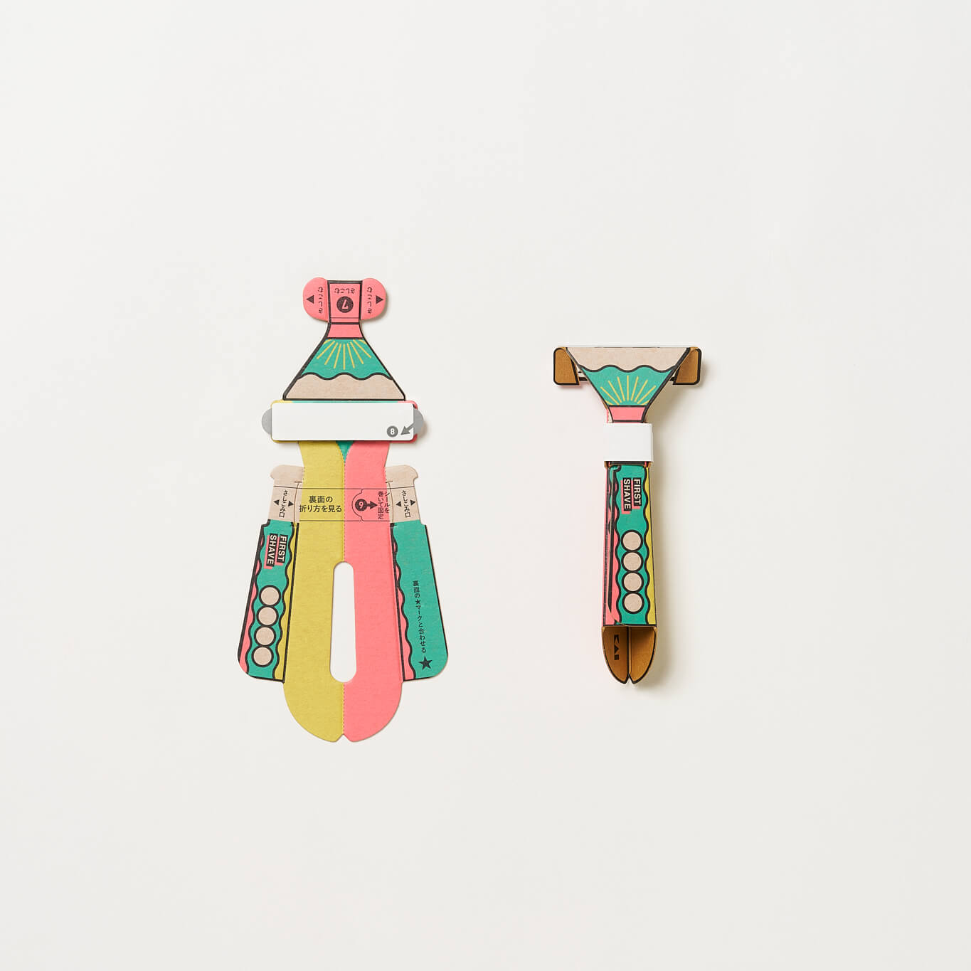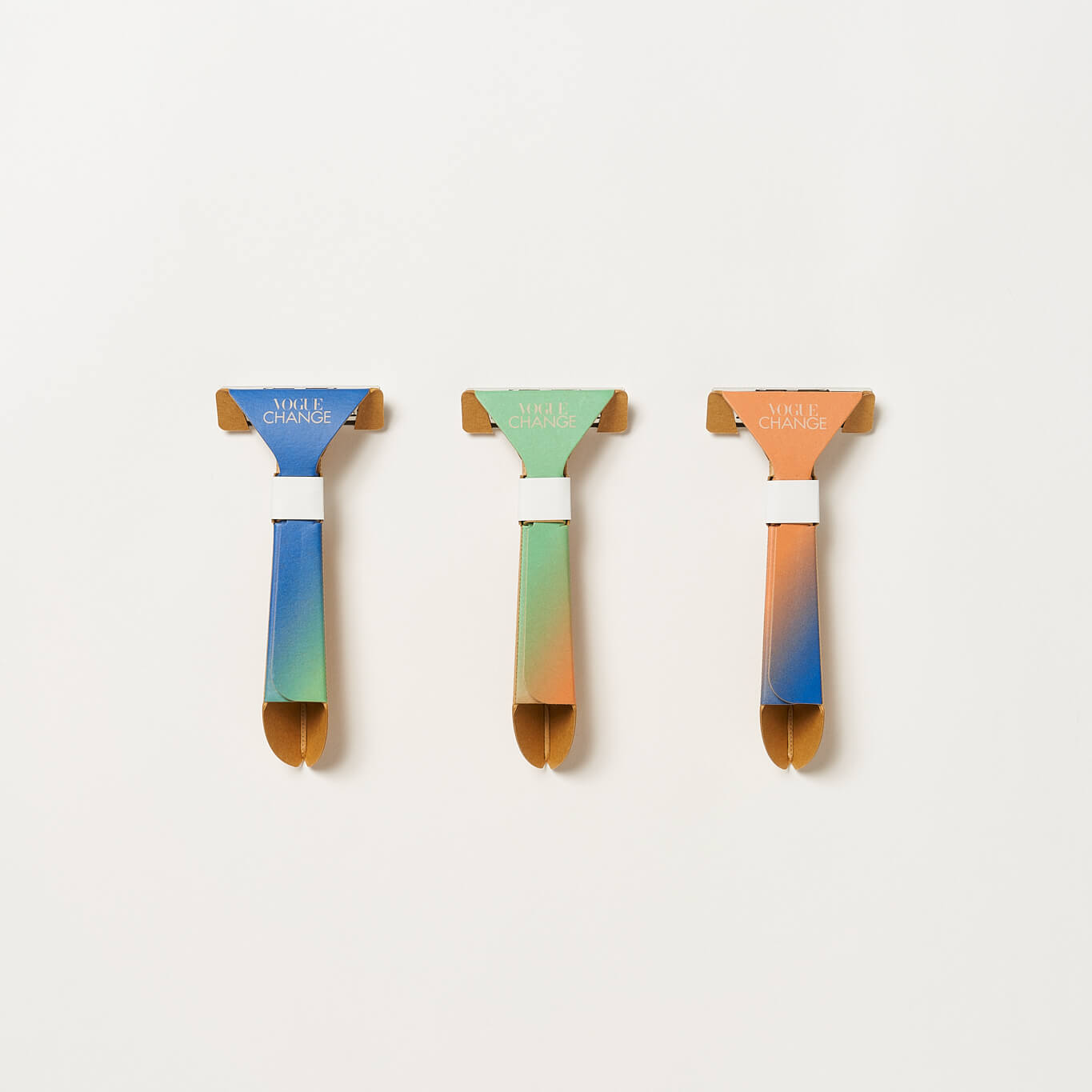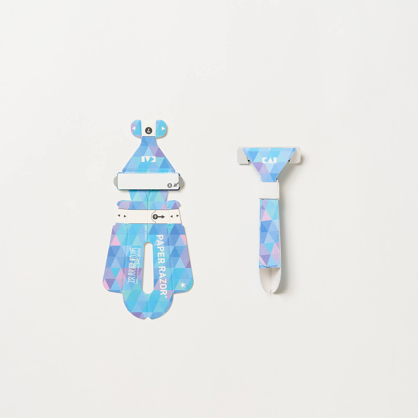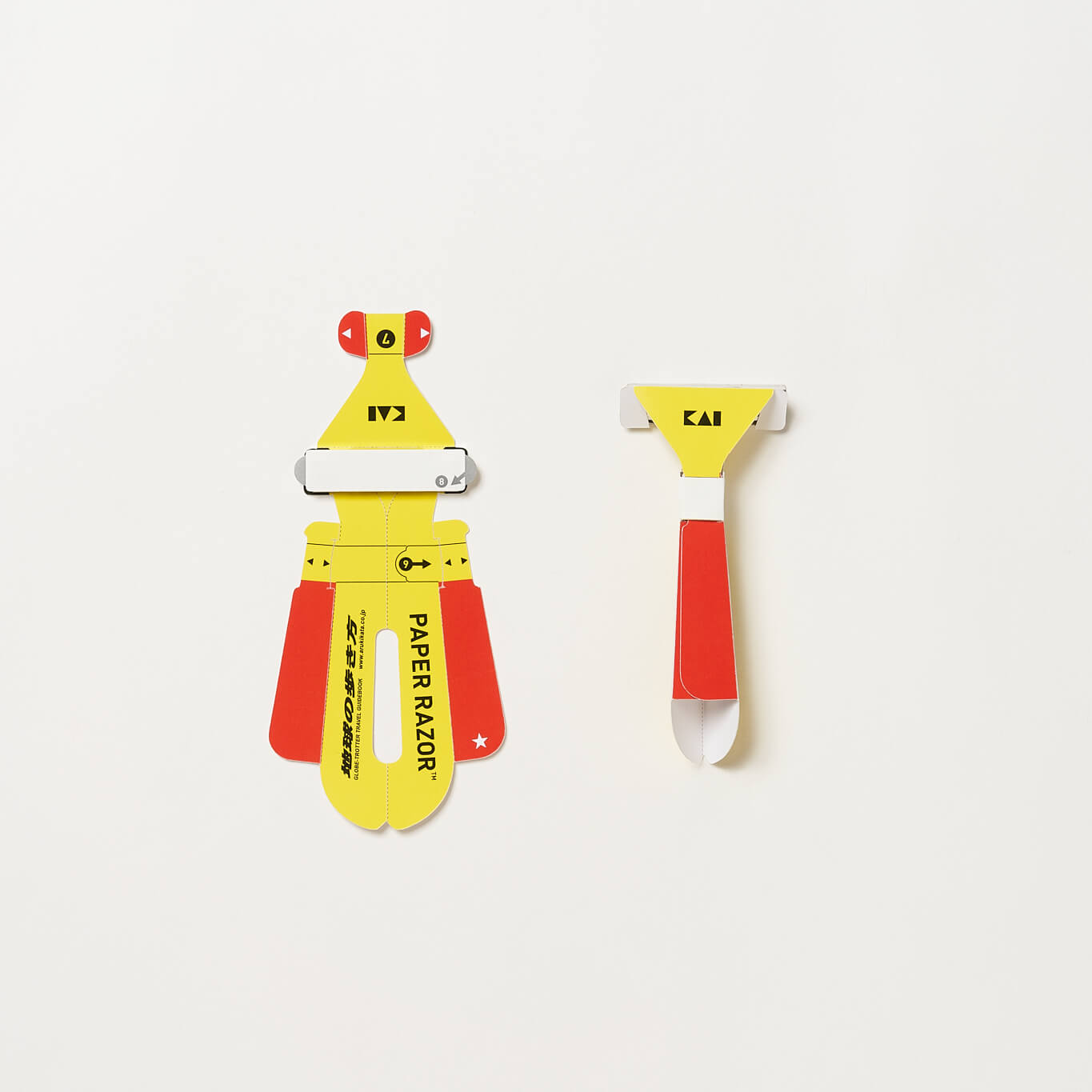 すべての人に手に取ってほしいから、デザインは、とにかくシンプルに。カミソリらしいおなじみのT型のフォルムをベースに、シャープすぎず、柔らかすぎないフォルムで。紙の強度や厚み、持ち手の長さは、みんなにちょうどいいサイズ感に。誰にでもすんなりと、違和感なく手に取っていただけます。